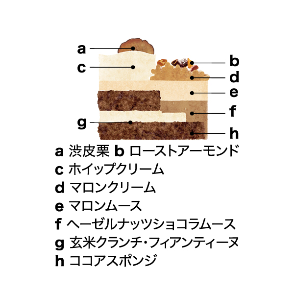 和栗をベースにしたマロンクリーム・ムースと、ヘーゼルナッツショコラムースを合わせた和洋折衷のクリスマスケーキ